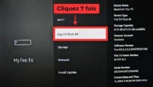 Appuyez 7 fois sur le bouton « Fire TV Stick 4K« .